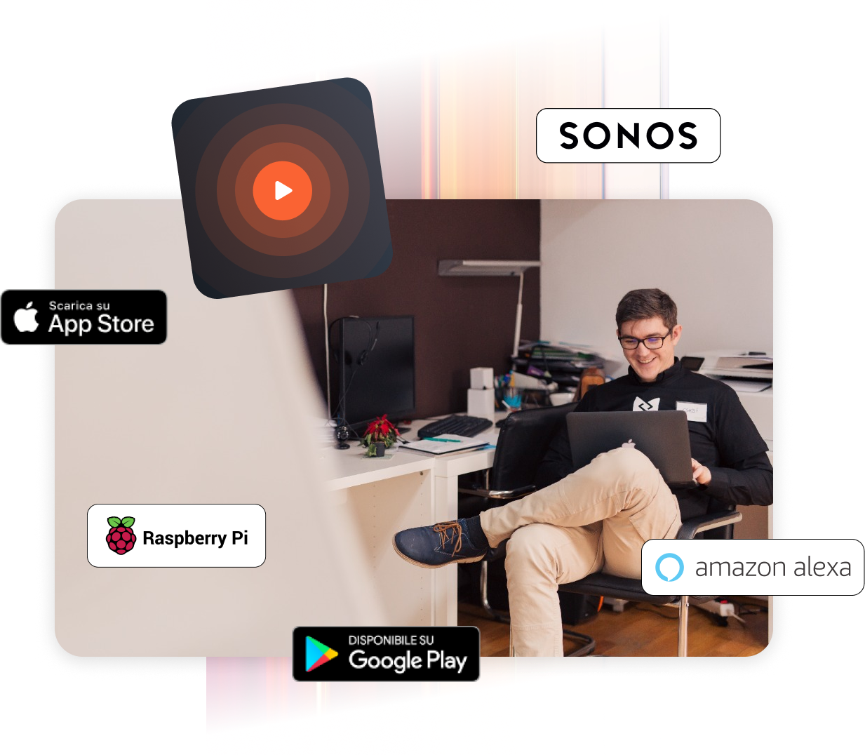 Puoi riprodurre MoosBox con qualsiasi device tramite: