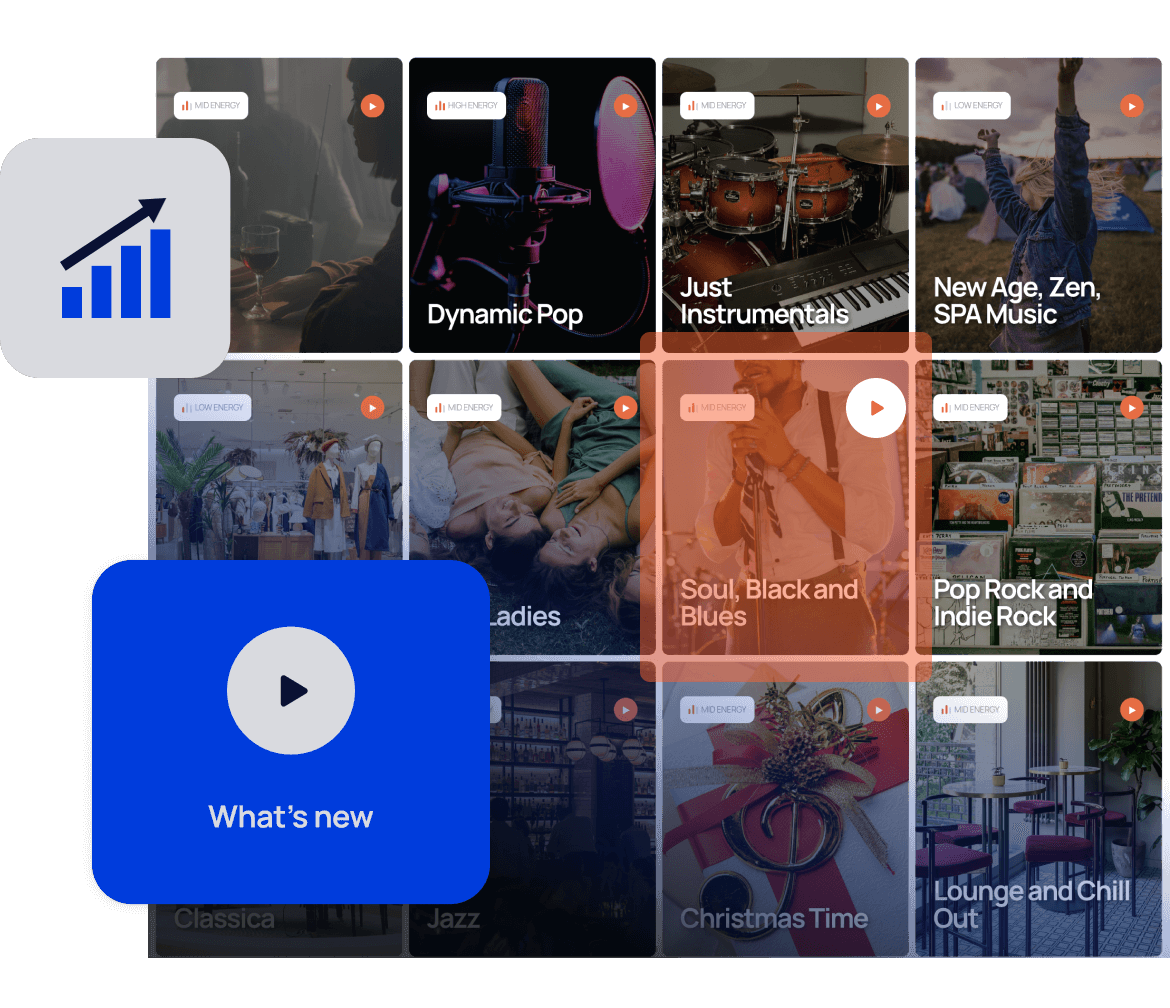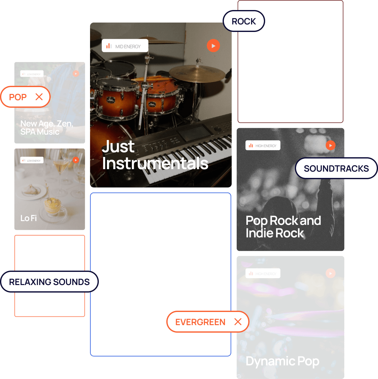 A specific music catalogue selection to tell the story of your brand and your business, includes all licences.
