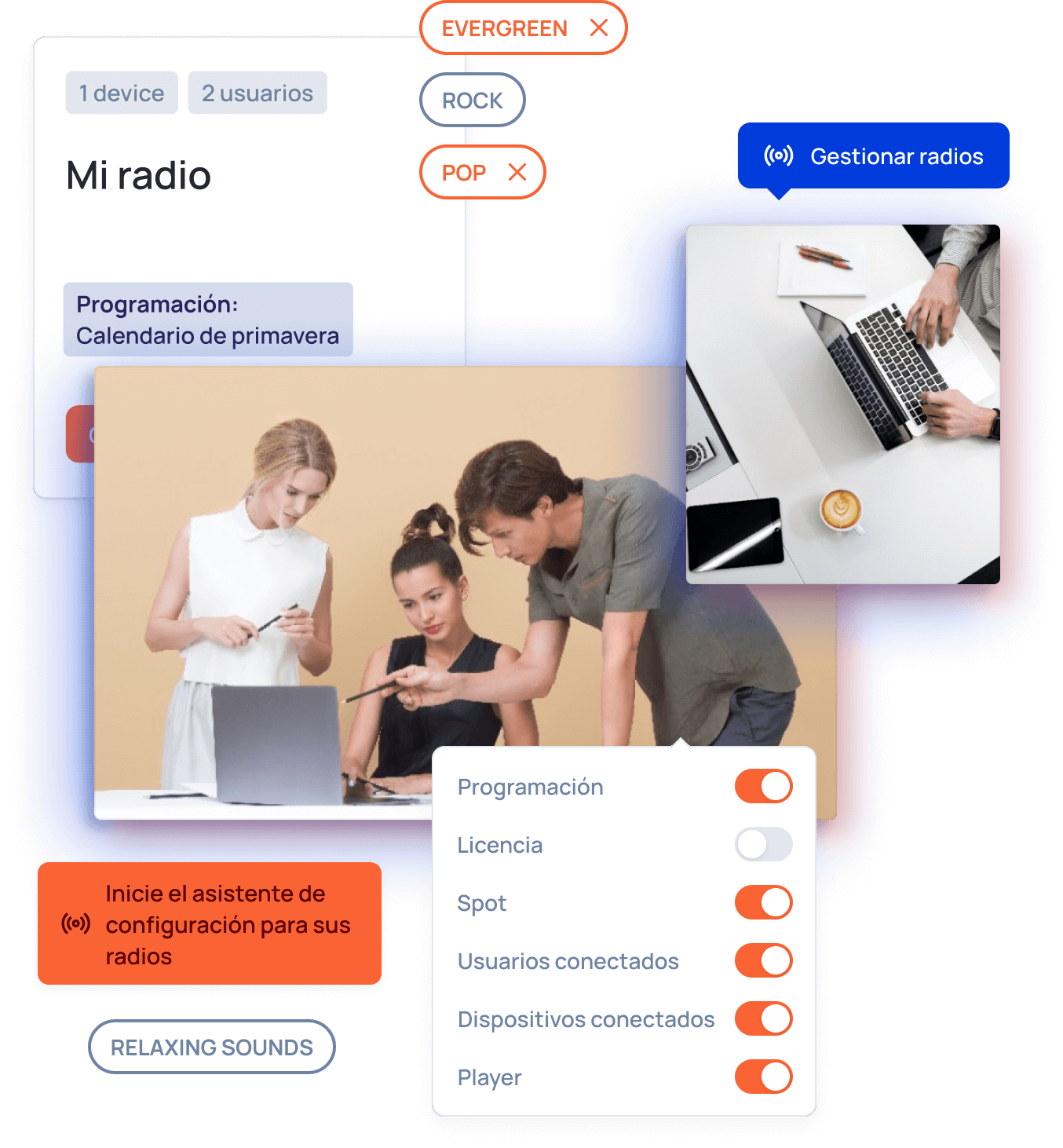 Mejora tu entorno de trabajo con una radio personalizada, distínguete de la competencia con música legal con todos los derechos incluidos y anuncios personalizados… ¡olvídate de preocupaciones con MoosBox!