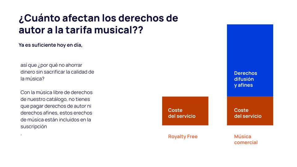 A menudo, las empresas tienen que pagar a sociedad de collecting, como SGAE en España por exemplo, una tarifa anual por usar la música más famosa en sus tiendas, restaurantes y negocios, además de pagar por cada canción individual que utilizan (derecho conexo). Esto puede convertirse en un costo significativo, especialmente para las empresas con muchas ubicaciones.